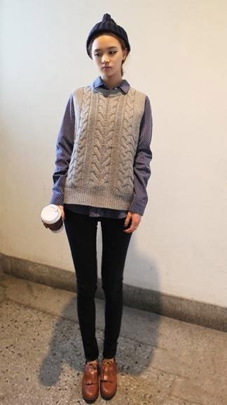 毛線背心搭配小花襯衫有點男孩風的學院穿著也很適合喜歡中性打扮的妞兒!