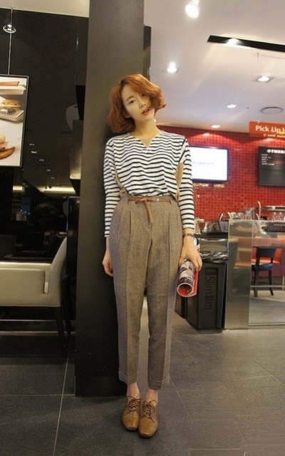 高腰吊帶褲配上皮鞋,這款穿起來很像Office Boy有點憨憨可愛的FU~