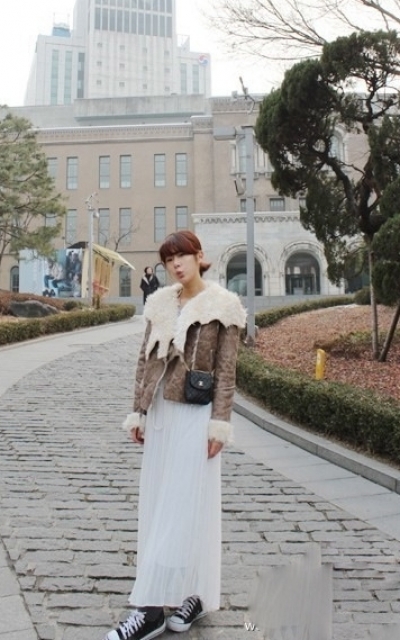 飄逸長裙搭配翻領的皮外套別有一番風味,在配上converse 球鞋整體帶出休閒感!