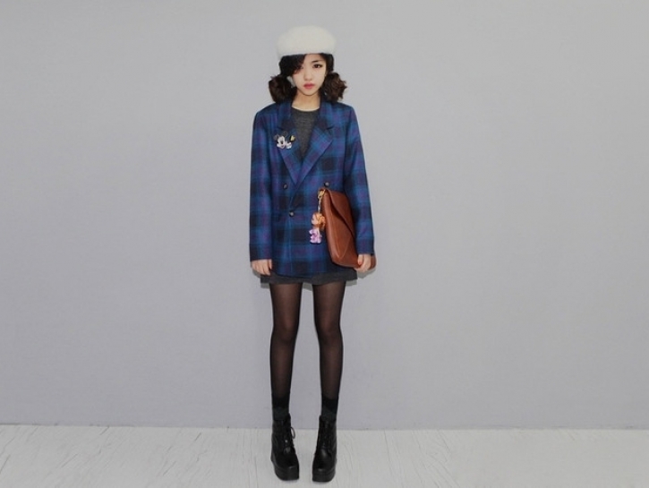 嬌小可愛的個子穿上格子西裝外套在配上毛帽整體就超級“kiyoda”(可愛)~~~