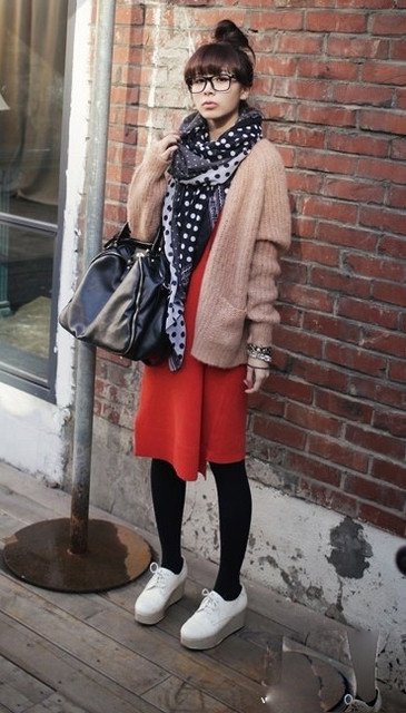 大紅連身裙在配上長板毛呢外套,這樣的衝擊讓整體感非常突出~很喜氣跟討人喜歡內~~