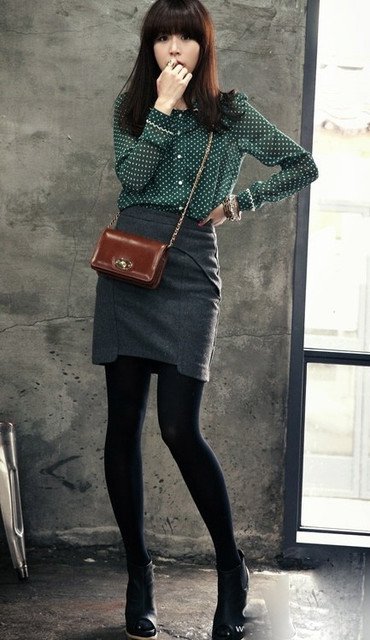 復古的小點點鴨綠色襯衫可愛的不得了,在配上一件及膝的貼身窄裙,搖身一變就成為復古的古著LADY!!