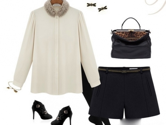 像這樣圍條毛領的白色襯衫也很適合上班族穿搭,外面配件LADY的大外套就很時尚了!