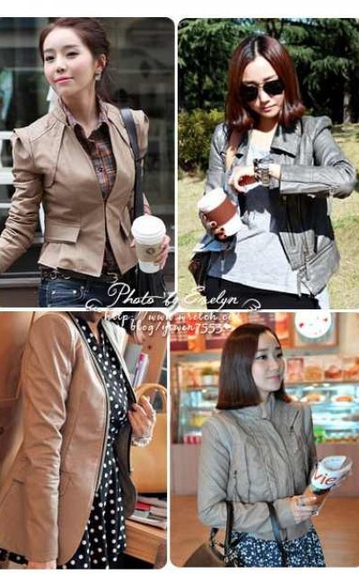 韓妞也愛穿皮衣…整個好率性又好甜美喔!雖然都是奶茶色皮衣,但款式好多樣化。