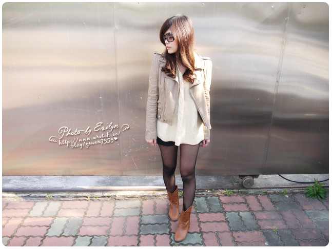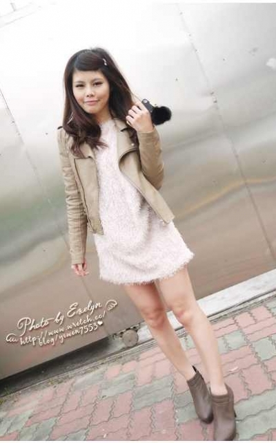 淺色皮衣包覆著深色洋裝看起來很顯瘦,是我最常穿出門的打扮。