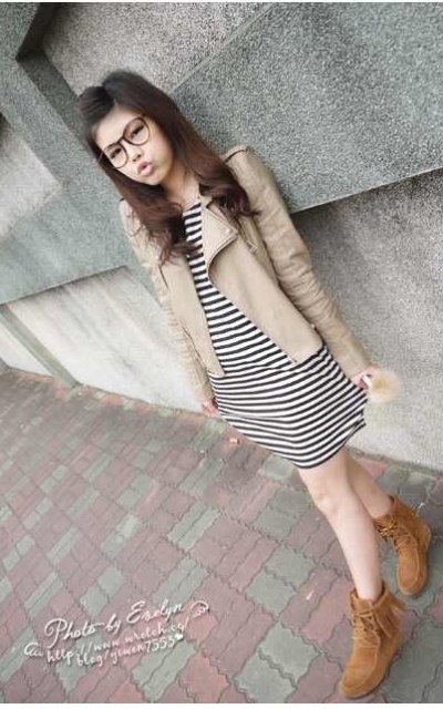 皮衣配上休閒風洋裝也超好看!!很普通的條紋洋裝馬上變有型!以前看到別人可以把條紋穿的有形,以為很難,其實只要搭的對,是非常簡單的呢!