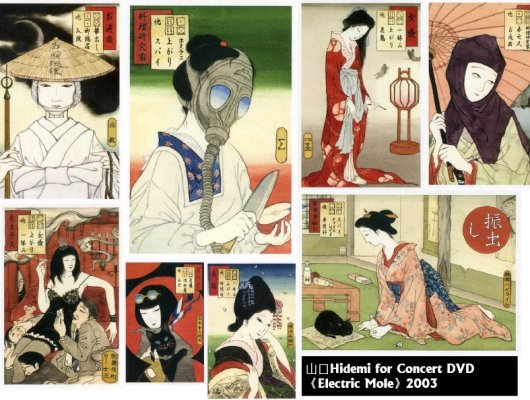 這是插畫家山田Hidemi為Ringo演唱會DVD《Electric Mole》所做的創作,浮世繪作畫呼應著椎名林檎喜歡運用的傳統日式裝扮,每一張圖都搭配著一首經典的歌曲,鬼魅的氛圍好令人喜歡。