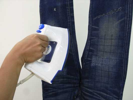 2-把牛仔褲掛起,將熨斗以不接觸到褲子布料的距離,讓蒸氣均衡地噴到褲子表面。