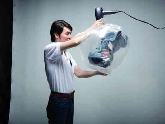 如果你是一個不用熨斗的人,那吹乾頭髮用的吹風機總有了吧?再隨便找一個可裝入牛仔褲的塑膠袋,結合吹風機的熱風,就能利用熱空氣對流的原理,把擾人的異味有效去除。