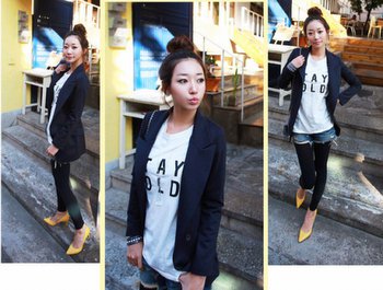 雖然好似穿搭很簡單,甜凱莉覺得西裝外套好像有一股時尚的魔力,有點類似皮外套能增添時尚感,可是又不會如皮外那般太過於帥氣中性,反而能將隨興的穿搭提升~