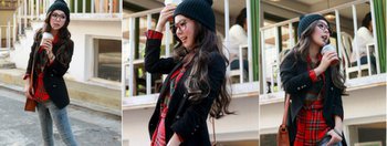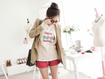 又是一種可愛的西外穿搭方式,相當活潑有朝氣,把西裝外套當作帶點兒軍外的的搭配方式呢!