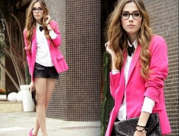 有些女生衣服單品多半是中間色調,就可以選擇這樣糖果色的西裝外套。