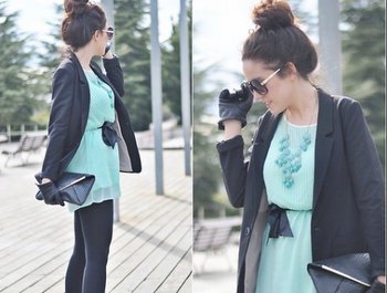 春夏會有很多的雪紡與蕾絲材質,韓妞也這樣搭!
