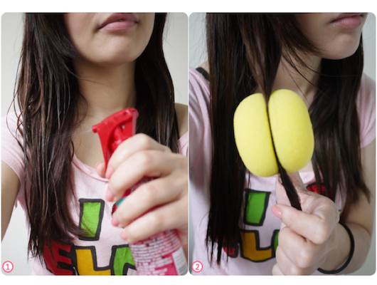 ❶先用髮妝水將頭髮噴濕