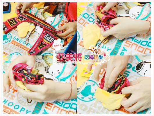 從原本大大的購物袋收成一個可愛的玩偶~~~放在鏡頭前東晃西晃的,嘿嘿,史奴比娃娃的魅力誰能抵擋,小朋友癡癡的看著史奴比,馬上就拍到我想要的照片了!一次就收工實在好輕鬆!