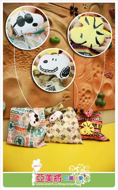好啦,最後讓我冷靜一下,來為大家介紹一下《7-11 Snoopy春日時尚袋》到底有哪些東東!(歹勢這一趴是職業病啊!)我光看到史努比玩偶就很興奮了,更何況連我去7-11消費,看到店內有展示《7-11 Snoopy春日時尚袋》本尊佇立在那,我早已不顧路人結帳的眼光開始大叫了。XD