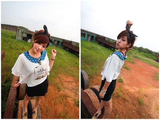 這套也是用黑白條紋當下半身呀~~這件裙子我好喜歡喔!!哈哈哈~買到我都忘記了說~!!