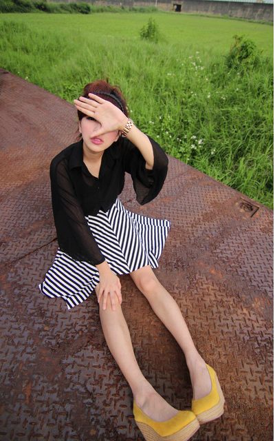搭配我的黃色楔型鞋~整個還是會很亮的FU~~~卻還是保有簡單的感覺呀~!!