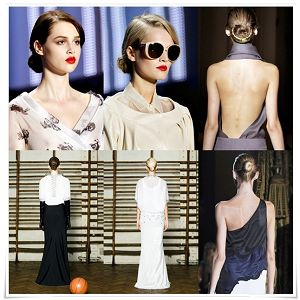 這類的中分波浪捲以Versace的秀最為經典。相信大家應該對Versace挺熟悉吧,之前與H&M的舉世聯名合作引爆熱烈話題,而今年春夏,Versace大秀帶給大家的則是一頭豐盈亮麗的秀髮。2012的優雅淑女風關鍵就在於 1. 中分髮、2. 低層次、3. 再配上淑女式的蜜桃唇與裸色肌。喜歡這類豐盈髮型的女孩們可以考慮去髮廊一趟,請設計師為妳剪上一頭低層次的豐盈厚髮,捲度的部分則利用濕髮再捲上海綿捲睡到隔天即可,切記別被設計師說服,好好保護秀髮別再燙了!
