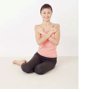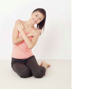 首先維持跪坐,雙手手臂放至鎖骨下方交差。
