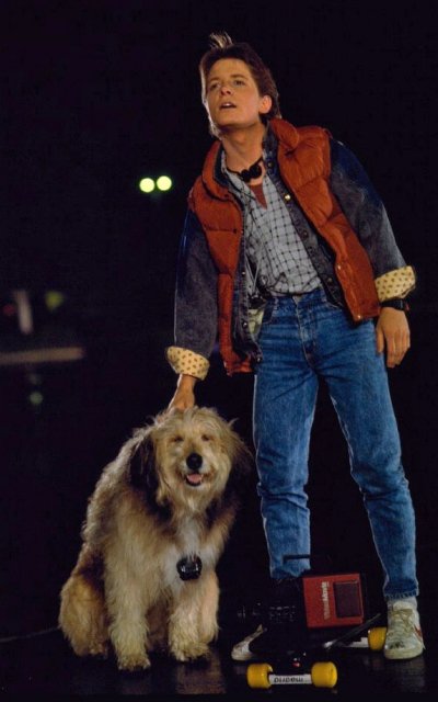 從那天開始,我就無所不用其極的模仿Marty McFly,只要是任何有關於Marty的東西一概不放過!從他的講話跑步的樣子到玩吉他、溜滑板,甚至連他在劇中的高腰牛仔褲、白色球鞋、牛仔外套加救生員背心的造型,我也都想盡辦法去搞個一套來,如果當年有所謂的Cosplay比賽,我想我鐵定可以靠著那套造型與起乩似的吉他獨奏(重點是邊彈邊用背貼著地爬行)入圍決賽…XD