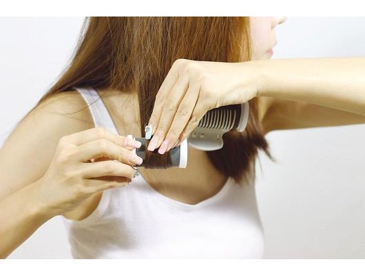4.5將其他分好的頭髮,用一樣的髮捲捲一圈之後固定住
