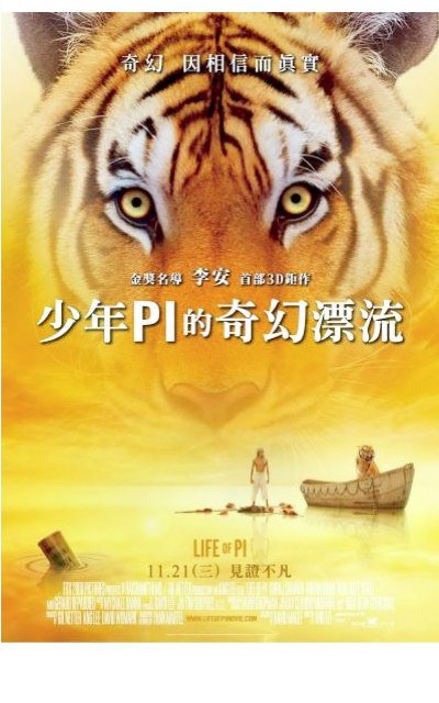 「敬天地、畏鬼神」,這是屬於東方的寶藏。我一直都膩透了那些永遠相信「人定勝天」的西方英雄主義。當我看到少年Pi在海上的暴風雨裡,已經失去一切的他,真心的對著天空喊著:『祢還要什麼?都拿去吧!』,那感動真的紮實的札進我心裡。