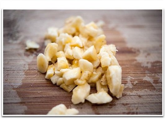 2. 香蕉壓成泥及切成小碎丁狀備用,並加入檸檬汁以防止氧化變黑