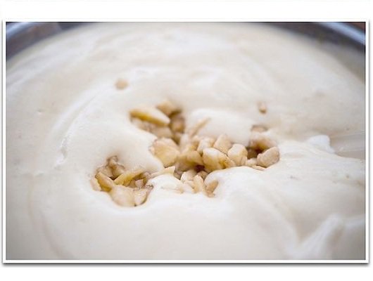 9. 最後加入香蕉小碎丁拌勻,再將麵糊倒入到烤模中,輕敲2下