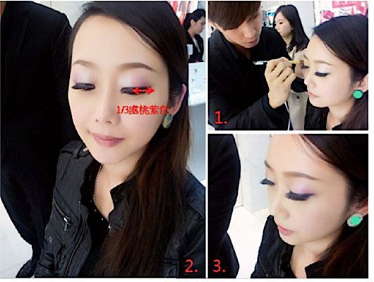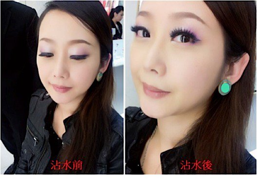 另外魔法師有特別傳授給我一個魔法,偷偷跟大家分享一下,如果想要更迷人的顏色(例如要去party或是燈光比較暗的地方),可以將棉棒沾取少量的水,然後沾取桃紫色的眼影粉,塗抹在原有的眼影上,顏色就更飽和更漂亮!