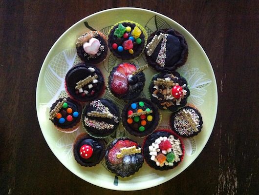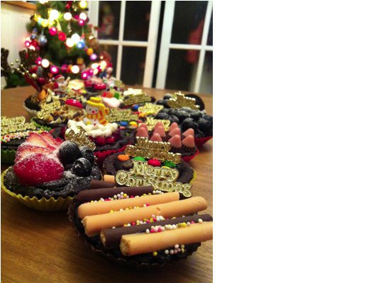 不過我可是不會錯過這個在一年一度美妙的節日裡,把食物和歡樂送到大家胃裡的機會。想想還有什麼比甜食更搭配耶誕節的歡愉呢?雖然每次只要做甜點我都很頭大超怕失敗,不過這次選了作法很簡單的迷你塔,送禮別緻又可愛。除了常見的水果塔,任意擺上一些隨手可得的小零嘴,更顯得繽紛歡樂。於是這個晚上,我 就在糖果餅乾與耶誕小飾品堆中,像個做勞作(明明就是要拿來吃的耶誕禮物)的小鬼,東拼西湊玩得不亦樂乎!