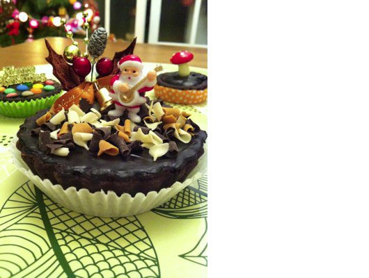 13.開始玩:任意將喜愛的水果、糖果、餅乾或耶誕飾品裝飾於表面(新鮮水果得刷上鏡面果膠並送進冰箱冷藏。懶得做鏡面果膠可以跟我一樣刷上一些淡色果醬,因為果醬內含有果膠)