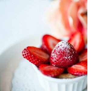 要吃時,再簡單放上草莓切片,篩上一點糖粉