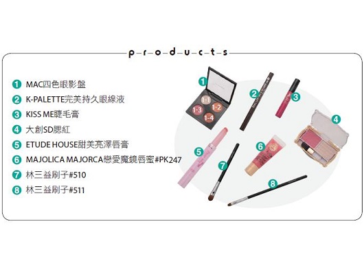 因為這個妝的眼影色彩不重,所以需要靠睫毛的捲翹度來提升眼神的魅力!所以要挑選一隻好用的纖長睫毛膏,仔細地刷上以不結塊為原則,就能讓眼睛的眼神自然放大!