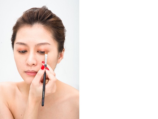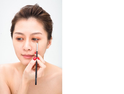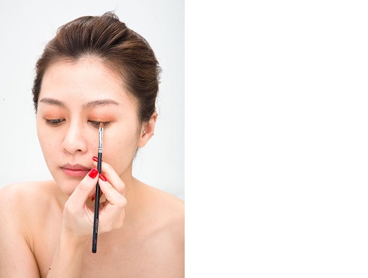 2.使用(產品1-2)的橘色眼影,畫在雙眼皮摺內。