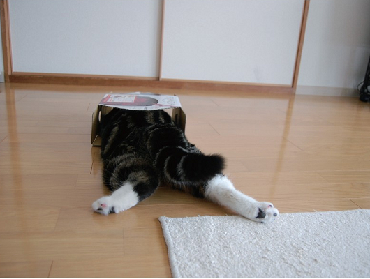 無論是哪一種紙箱都先塞進去再說,擁擠狹小的感覺真的很難以抗拒啊~(啊咧~箱子怎麼變形了!)