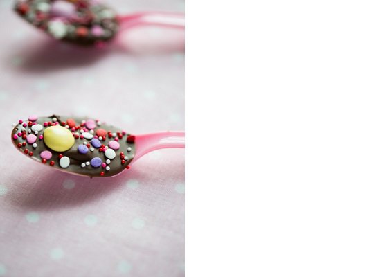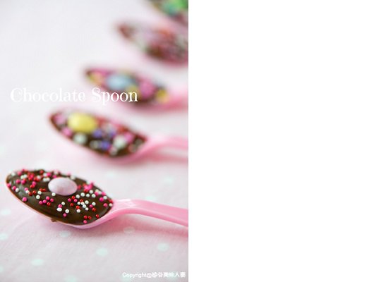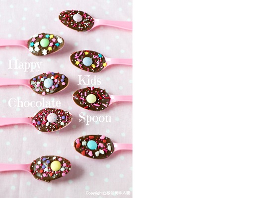 一支支湯匙上盛著濃郁可人的巧克力糖,撒上五彩繽紛的彩色糖片和巧克力米,孩子的雙手讓餐桌是滿滿驚喜與笑聲,這是眯眯的超簡單手作,希望你們會喜歡。