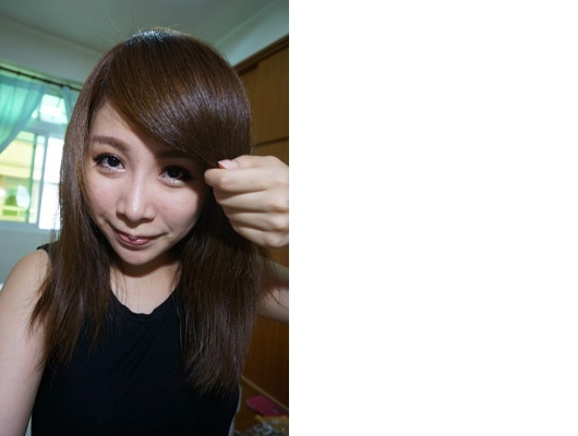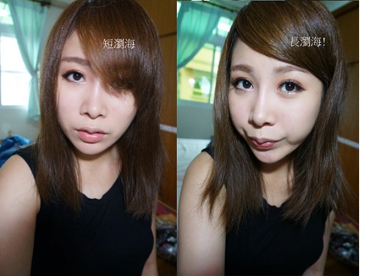 一秒變長瀏海來了,把另一邊的長髮,跟原本的短瀏海分在一起