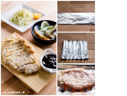 KT以前曾經發過一篇「低脂黃金脆雞腿」,教大家怎麼用錫箔紙做成小枕頭,讓雞腿墊高把油滴出來,現在要教的是進階版喔..直接用錫箔紙做成波浪形烤架,把豬排或是雞排放在自製的「油切烤架」上。