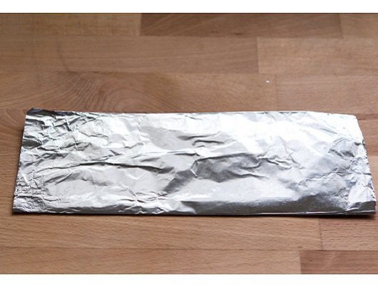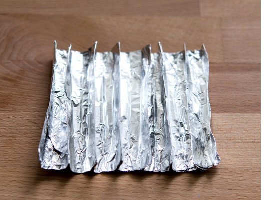 Step 1: 錫箔紙折成3折,這樣就有3倍厚的錫箔紙,支撐強度也會增加