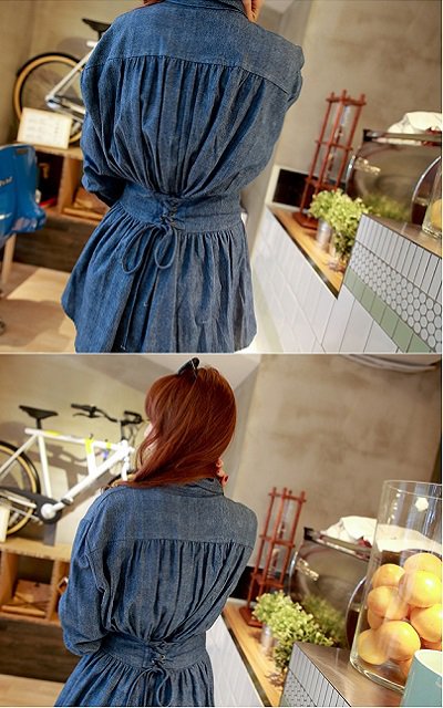 這件洋裝真的太正,剪裁方面有別於一般單寧襯衫直筒中性,他多了”收腰”的設計! 加寬腰部的區塊,讓整件洋裝穿起來就是<俏麗>