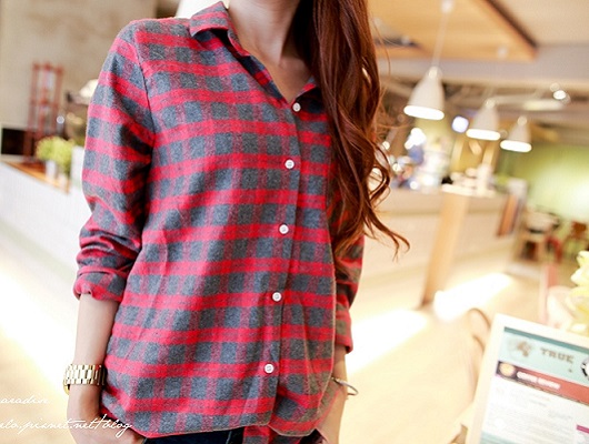 #紅灰格紋襯衫