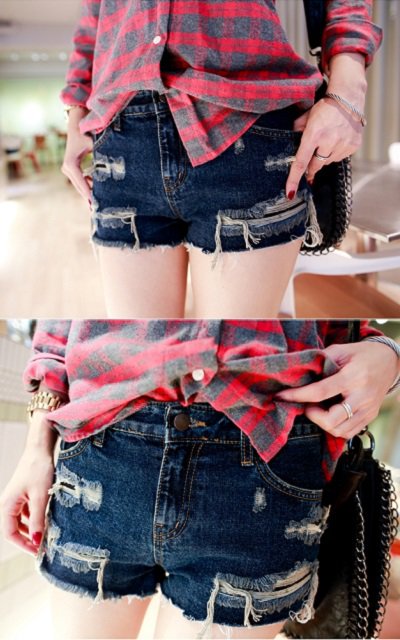 #自然感深藍單寧短褲