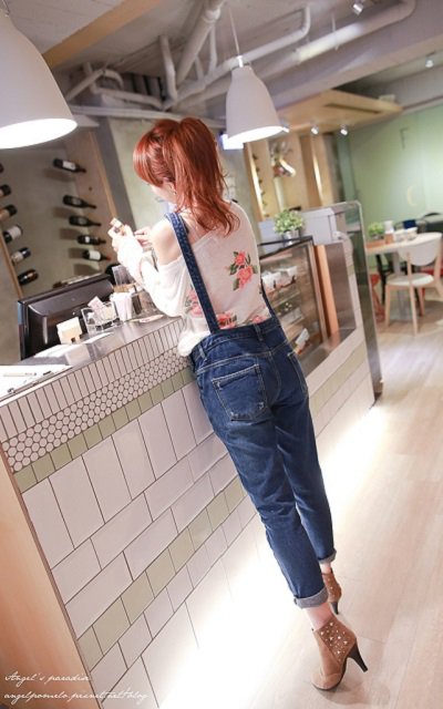 顏色單寧經典耐看的藍,不會太深、也不是刷舊的頹廢感!以前總覺的吊帶褲不是很像工作服,就是太貼身變辣妹。今年推出這樣的版子,真的好看到讓人哭哭~~很有細腿的效果! 穿起來又很自在~內搭也跟著很隨興了 (笑)