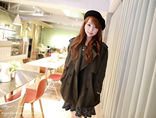 袖子還有立體的公主袖剪裁~天氣比較冷的時候,就可以搭件外套!安啾這個LOOK 是用率性感來搭配優雅,比較OVERSIZE 歐美感的西裝式短風衣外套,剛剛好不遮住洋裝的裙襬~