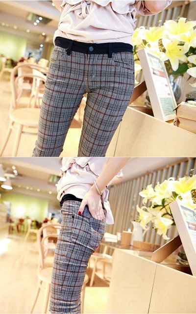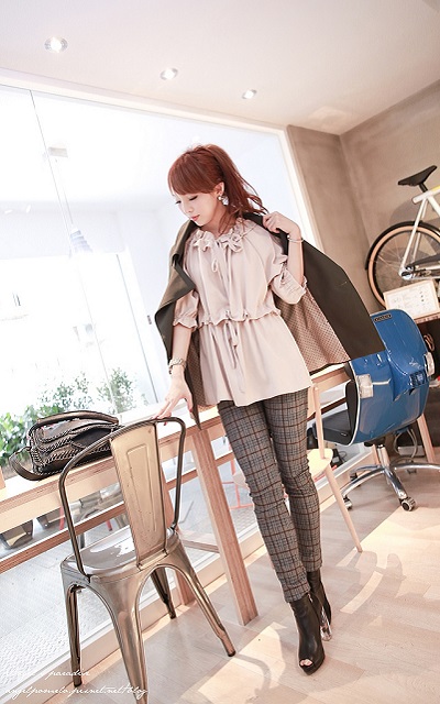 小腿的褲管倒是沒有非常貼,這樣搭配低跟牛津皮鞋,會很好看唷!!!!最近看主君的太陽,我喜歡主君的皮鞋X窄管褲>< …簡簡單單的色系,就可以很優雅又有重點囉!!! 難得遇到很耐看又顯瘦的格子褲呀!