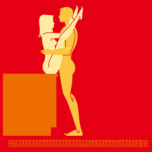 讓他背向著床邊站著(或甚至是背對著洗衣機或乾衣機也可以),妳的男人兩手捧抱著妳的臀部和大腿後側,把妳舉起來。用妳的雙腿夾住他的腰間(同時把妳的腳放在床上撐著),同時用妳的雙臂環著他的頸子和肩膀。在他的陰莖進入妳身體的同時,妳整個人懸掛在他身上,在他的雙臂支持下,上上下下地躍動著。
