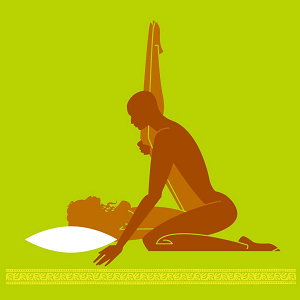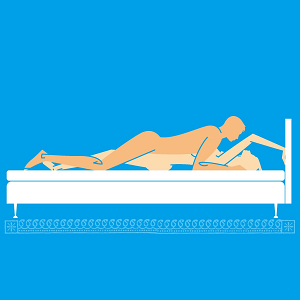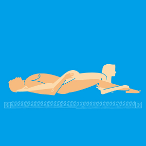 頭枕著一個枕頭仰躺著,妳的腿往空中盡可能的舉直。妳的男人跪著(胸膛抵著妳的大腿),輕輕把妳的腿推向一邊──不讓它們往旁邊滑落,然後往前傾進入妳。他可以把手放在床上或地板上撐著,放在妳身體的哪邊都行。
