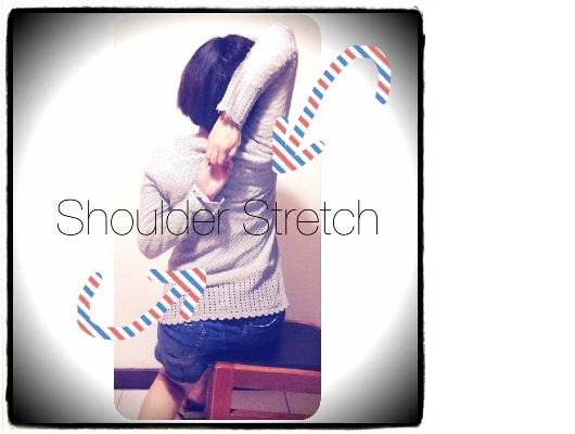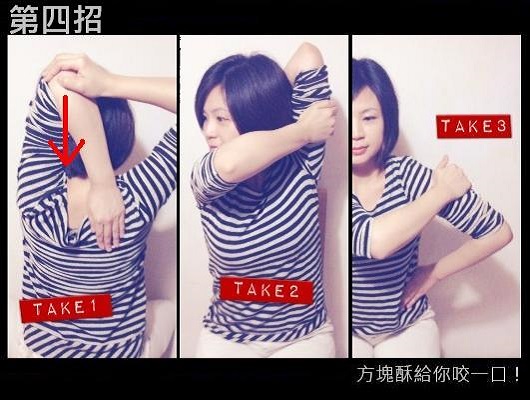 3.伸展肩膀:然後挺起你的脊髓,右手從上面往背後拉從下面的左手,然後換邊一樣動作!