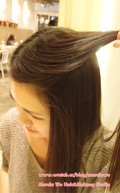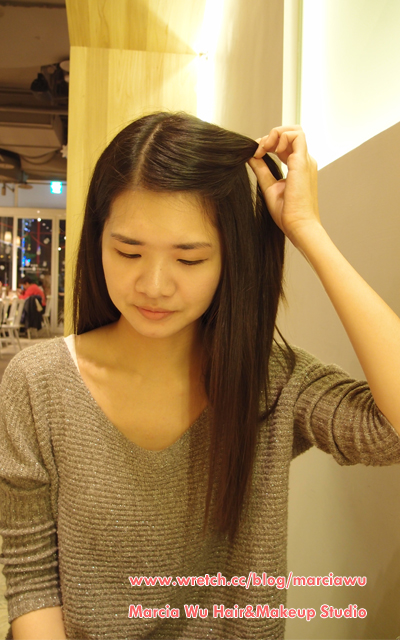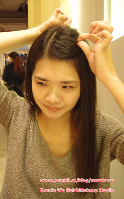 2.抓出前髮三等份中間的瀏海,髮量不要太多。